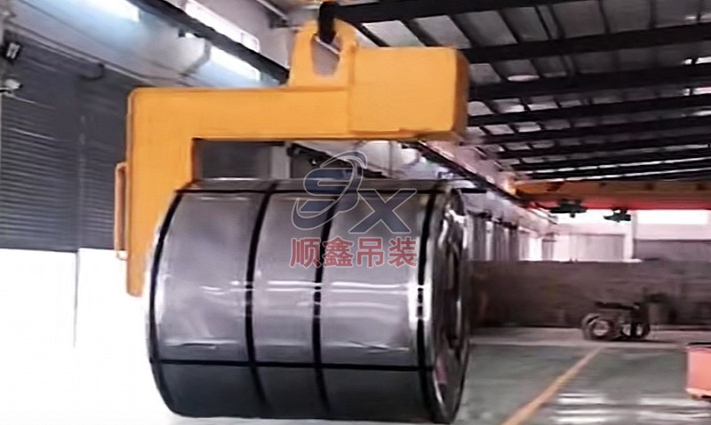 翻轉吊具通過機械剪力原理,對立式擺放的卷鋼進行單邊抓取,來完成卷鋼的裝卸,當改變重力點時,可以對卷鋼進行翻轉,作業時不傷鋼卷。其吊耳采用加厚處理,焊縫飽滿牢固、延長使用壽命。